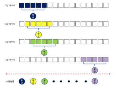 simple moving average는 전체 데이터 중 일정 시점을 기준으로 연속된 일부 데이터 n개를 사 용하여 순차적으로 평균을 구하는 방법이다 (그림 10 참조). local regression은 전체 데이터 중 특정 x0값 근처의 관측자료를 사용하여 최소자승법을 적용해가는 방법으로 두 기법은 변동성이 존재하는 데이터를 평활화 하여 노이즈를 제거하는 방법