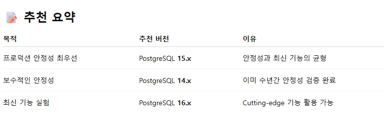postgresql 버전이 13~17 까지 있다.